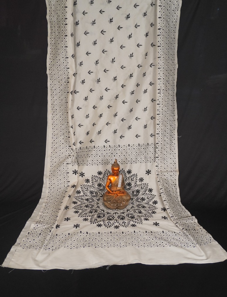 The Blue color Abstract Art Silk saree with Blue abstract art all over the body.