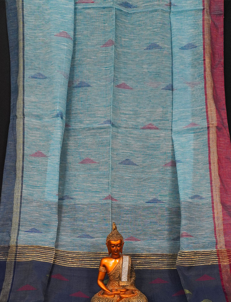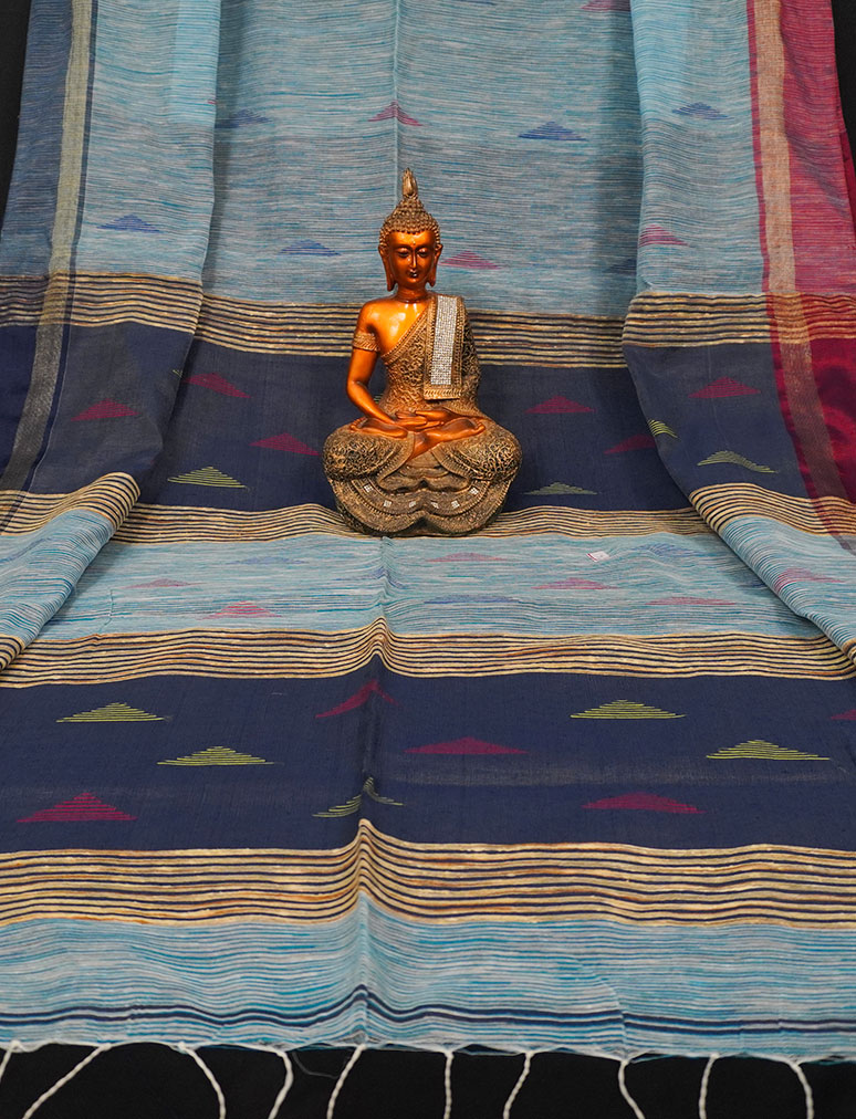 Ethnic Soft Cotton Handloom Saree Light Blue