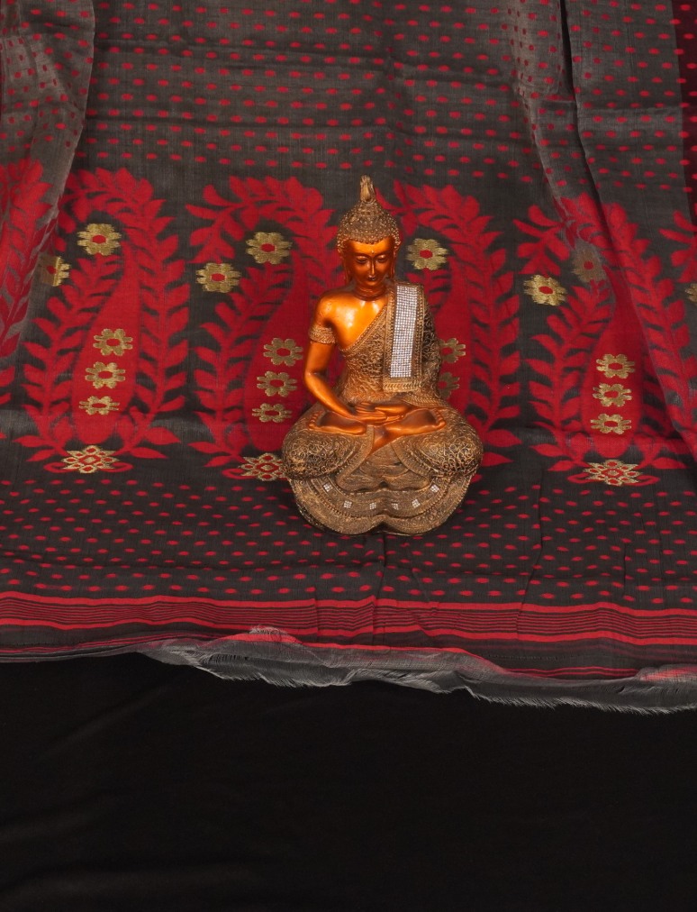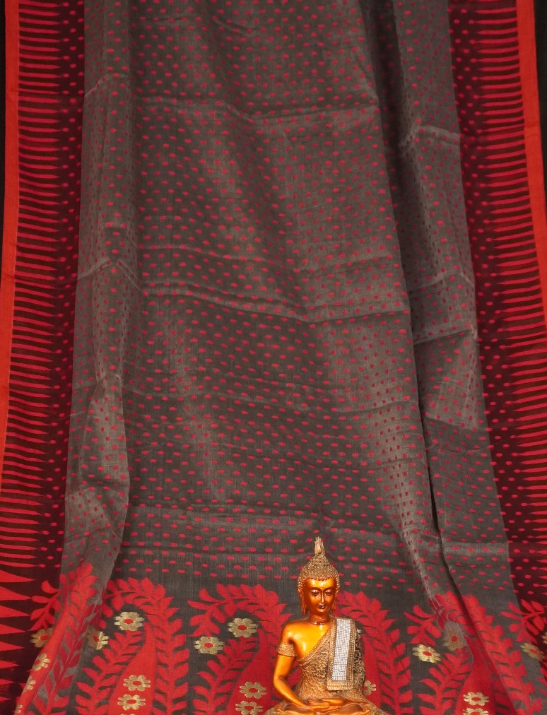 Red & Grey Soft Dhakai Jamdani Saree
